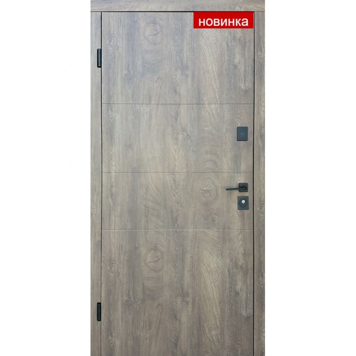 Полотно товщиною 68 мм, метал 1.2 мм, утеплення мінеральною ватою та утеплений короб допомагають зробити двері більш комфортними у використанні. А чорна фурнітура додає моделі сучасного вигляду та підкреслює її стиль.
